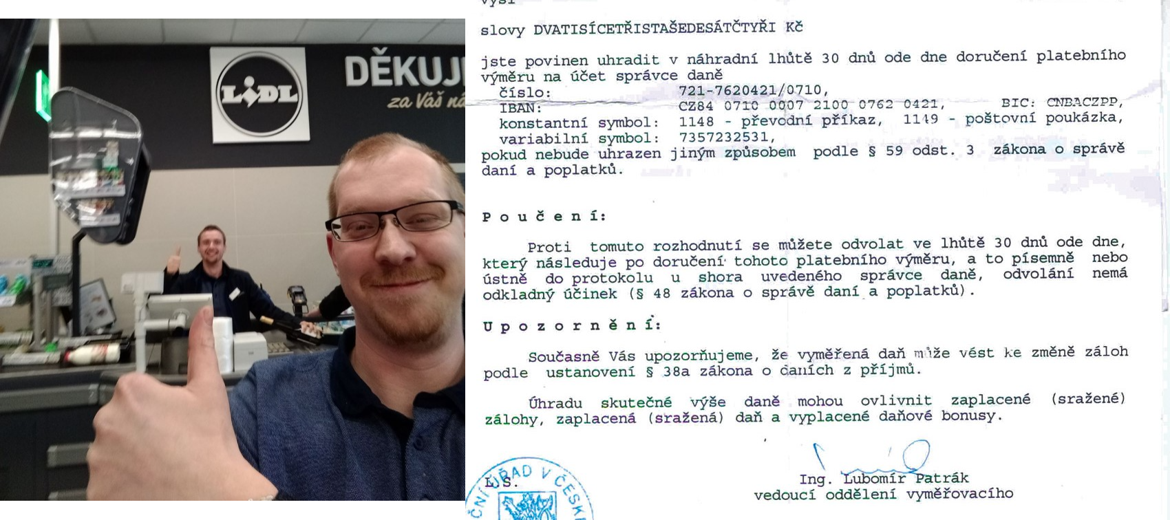 Joseph Procházka: "Přede mnou stála povinnost zaplatit pokutu ve výši 55 340 korun za dodatečné příjmy."